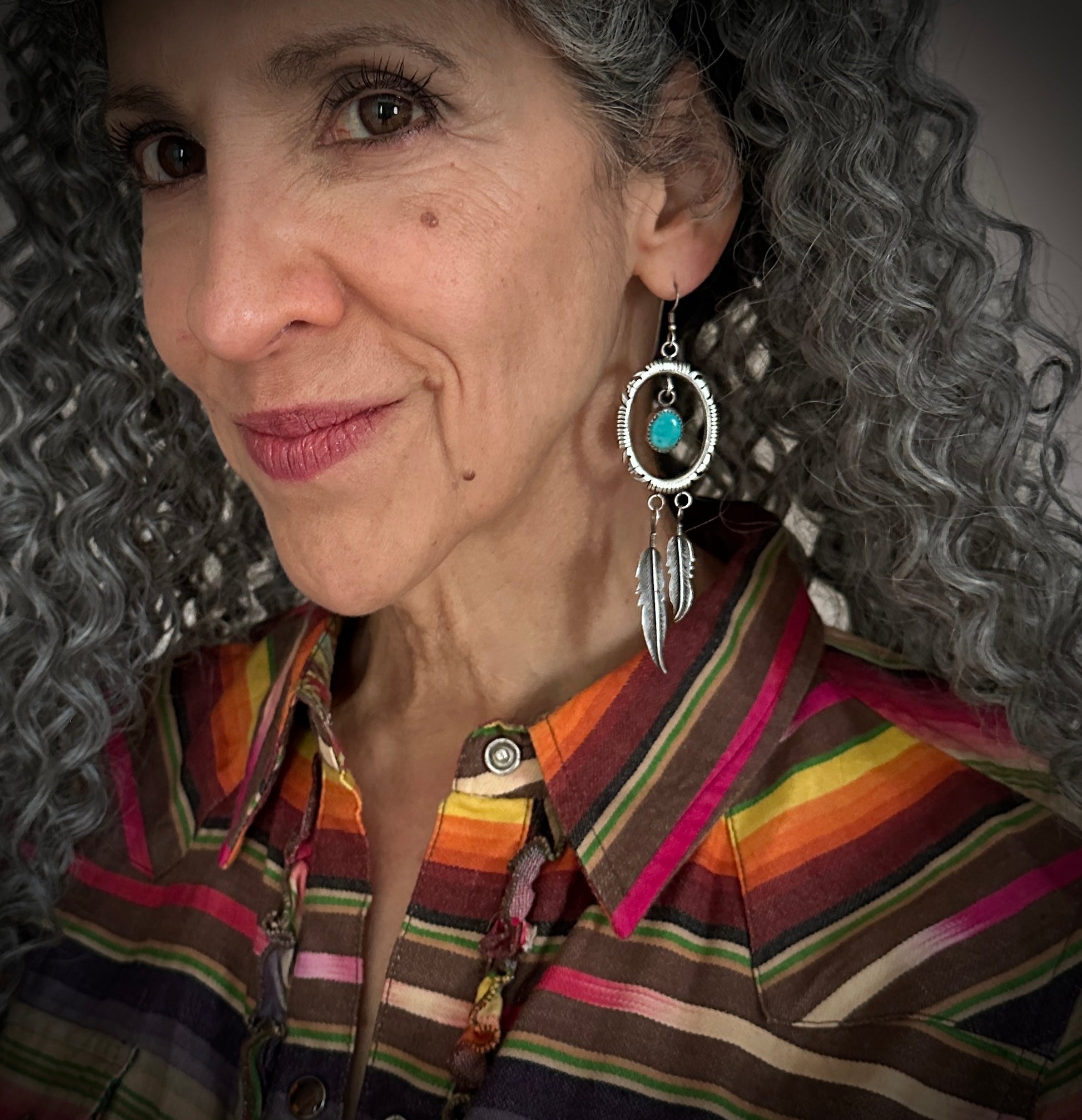 4+" LONG Turquoise Feather Earrings Native American Navajo - Vintage