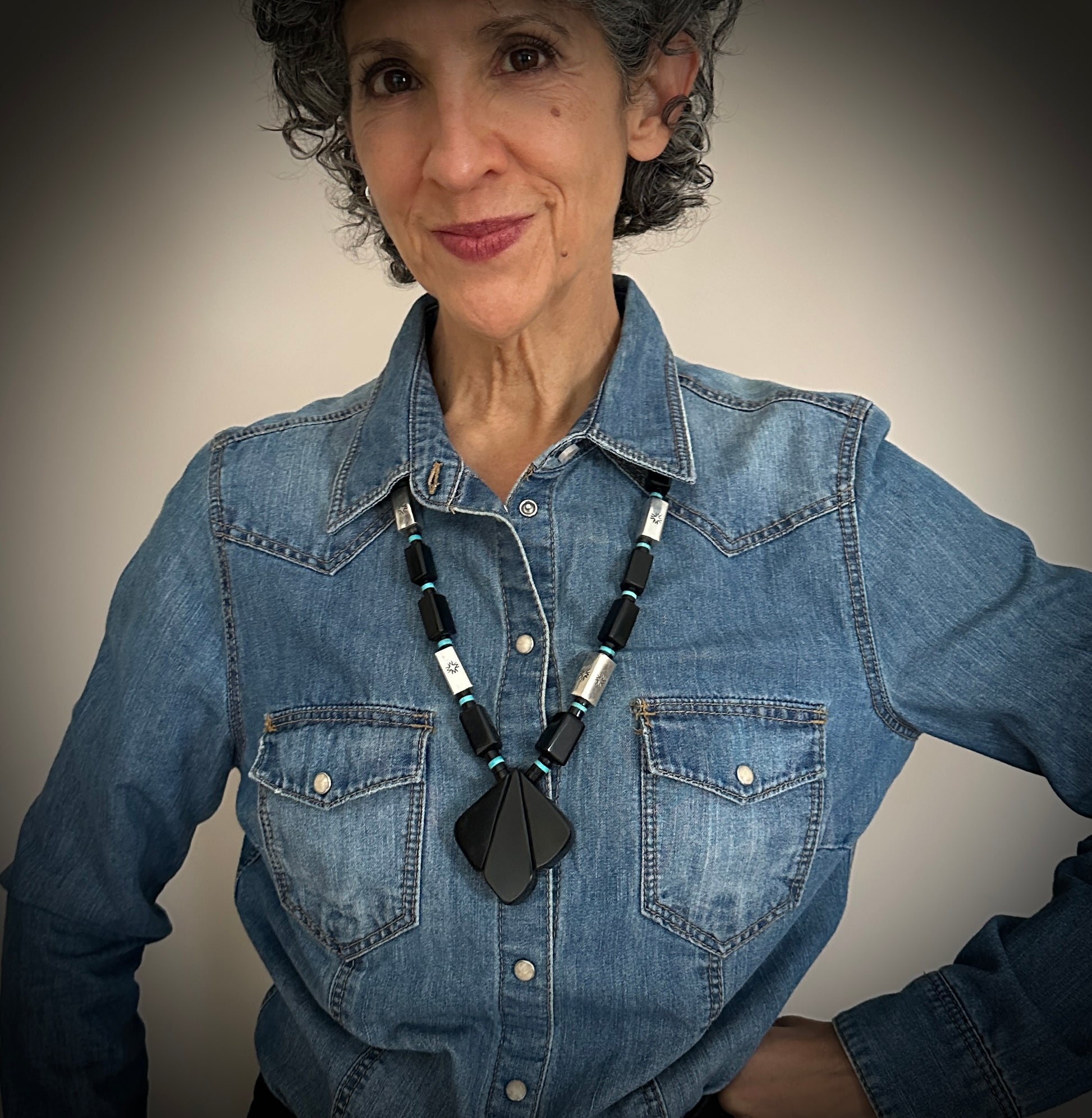 Black Jet Turquoise Santo Domingo Pueblo Kewa Necklace - Vintage