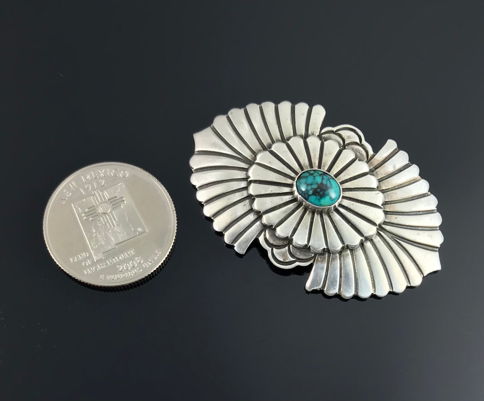 Navajo Turquoise Concho Pin Brooch Hand Stamped Sterling Silver - Gary Reeves