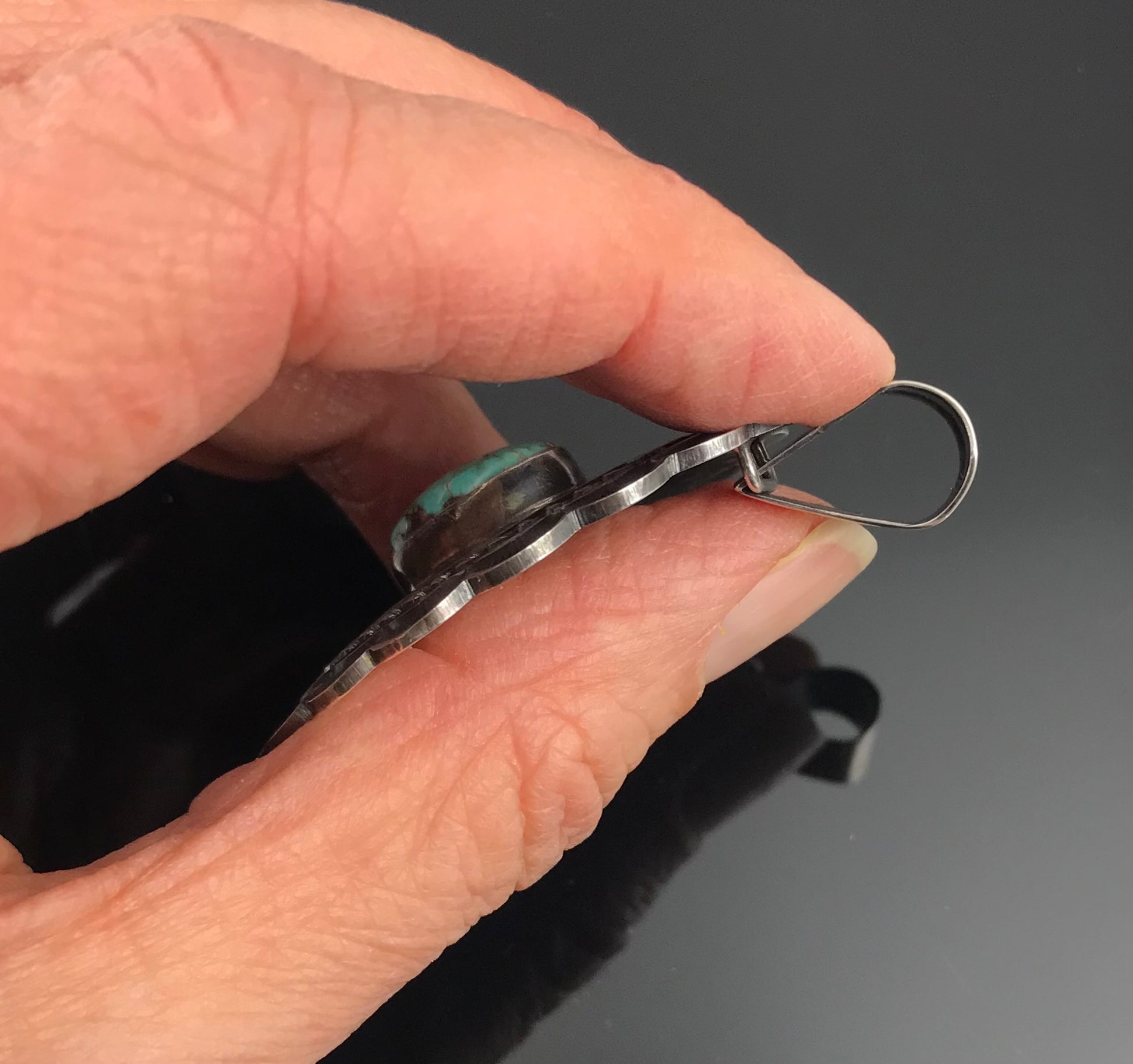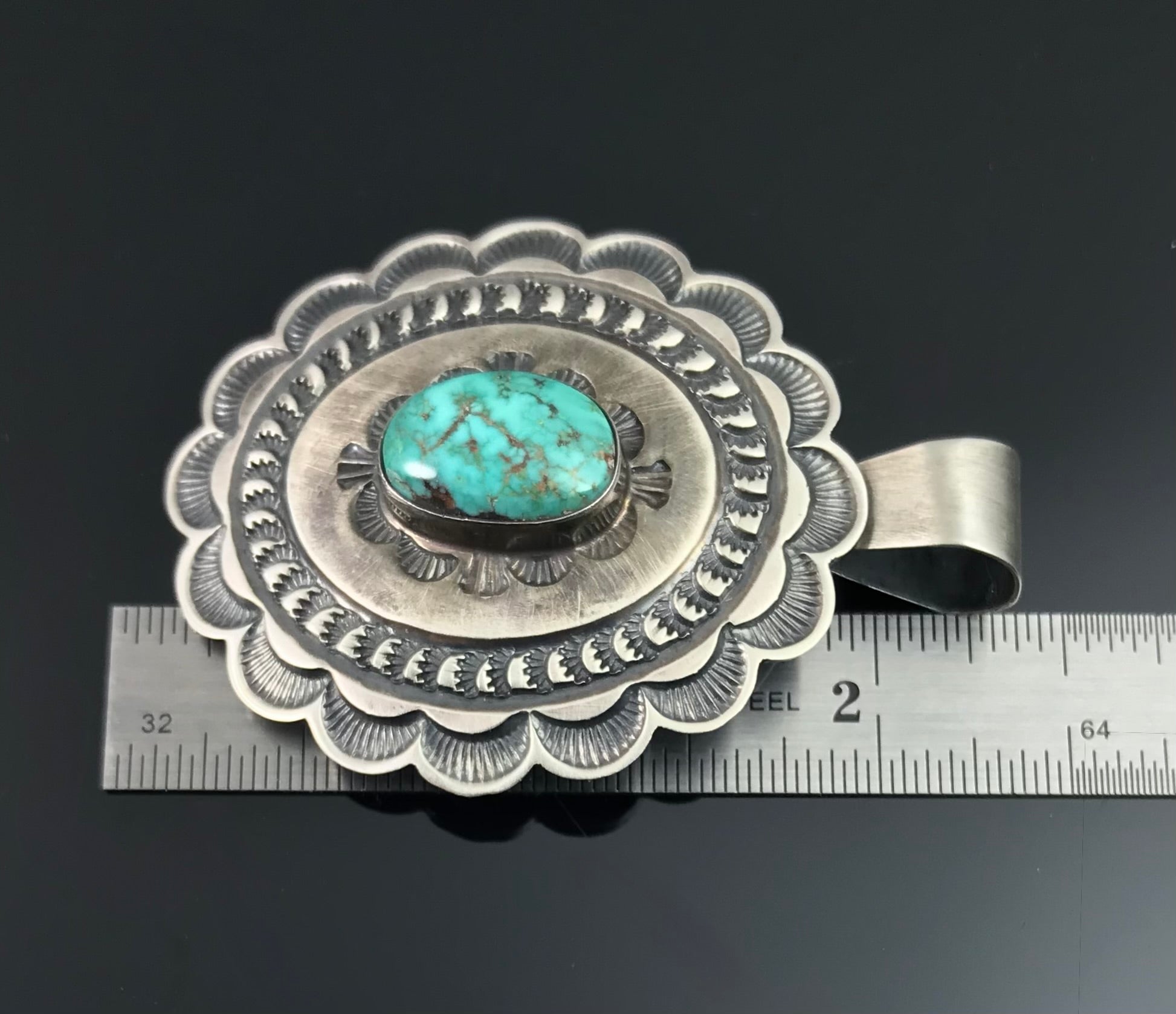 Navajo Turquoise Concho Hand Stamped Pendant Native American - Andy Cadman