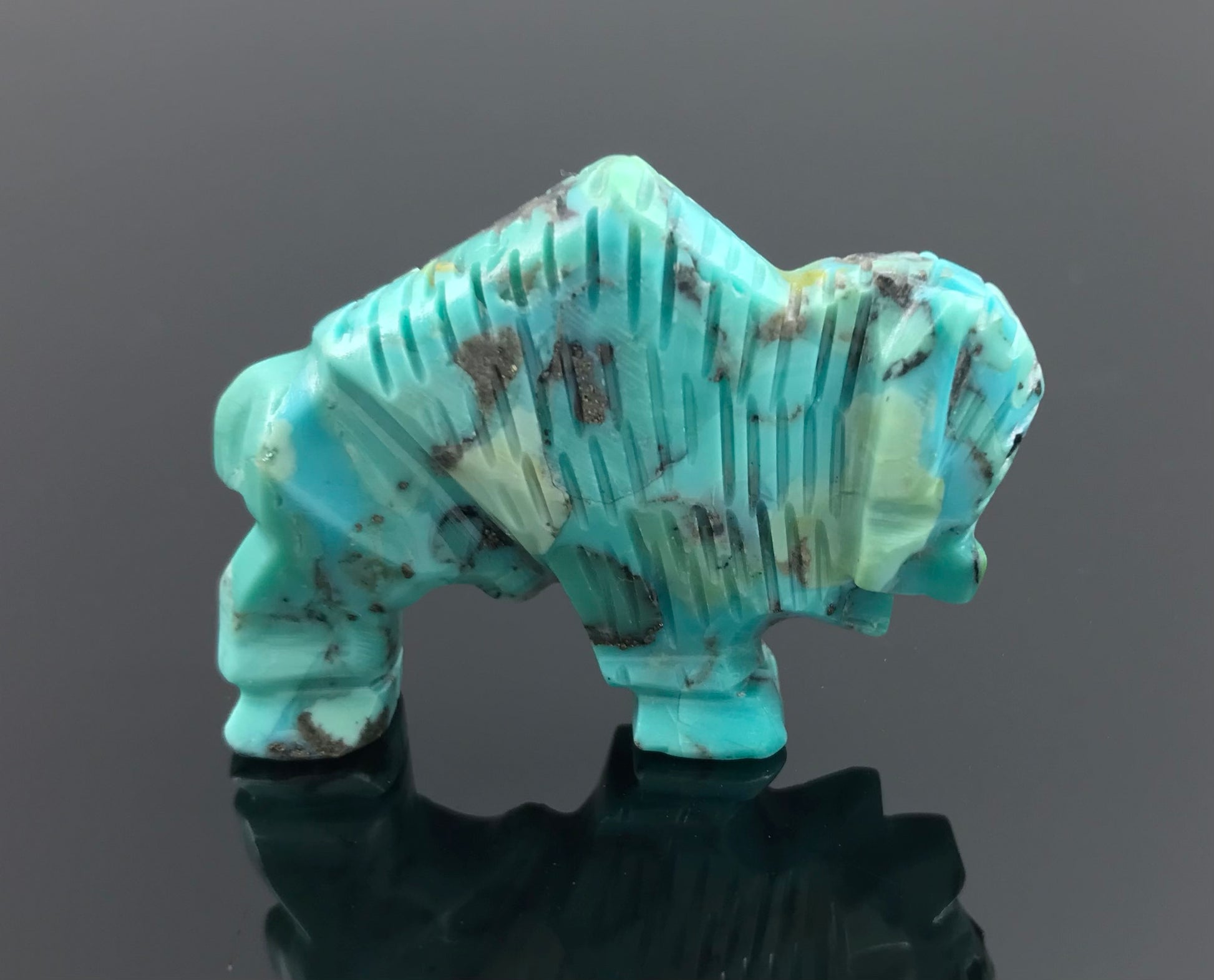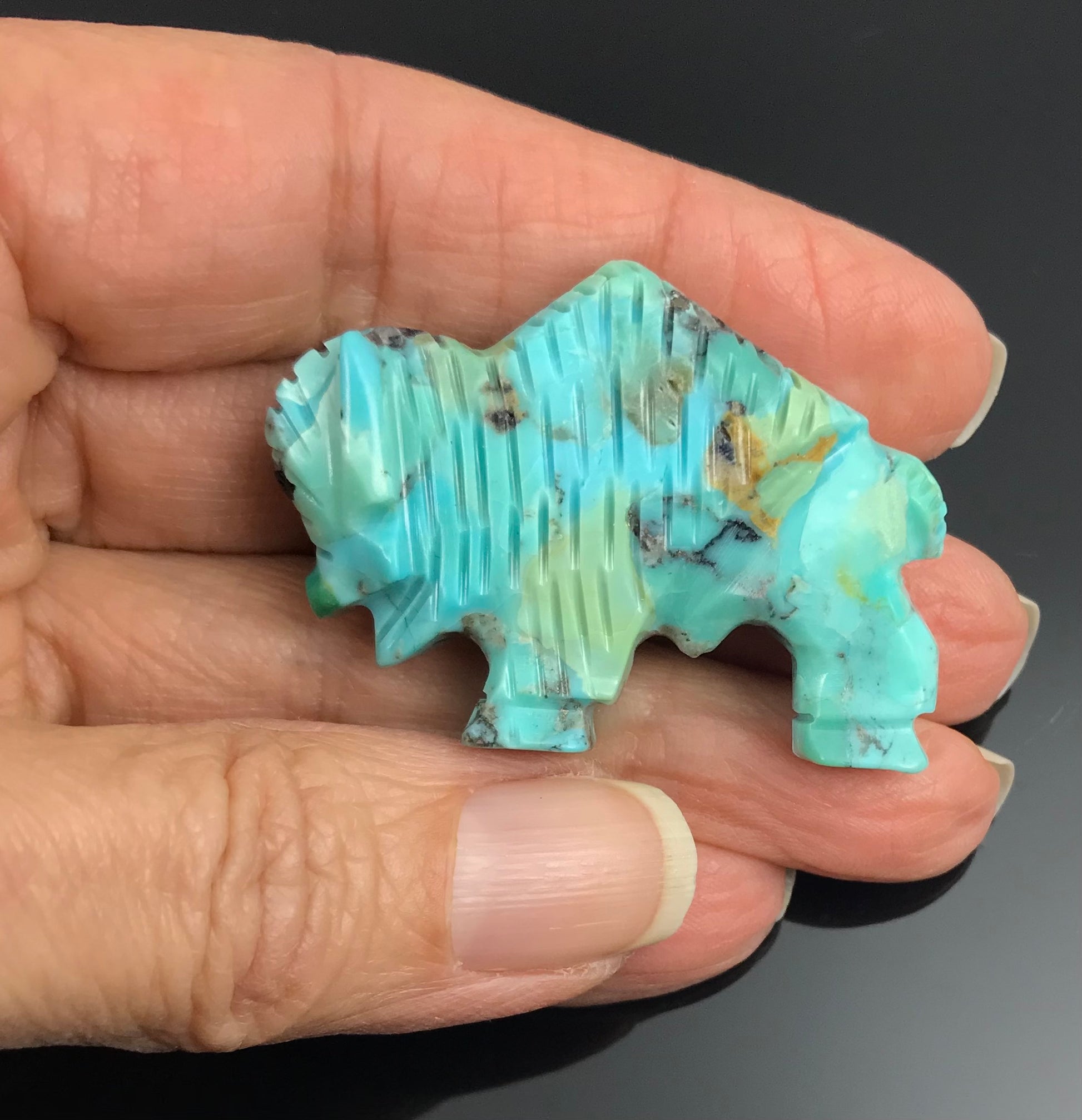 This is a pair of buffalos; one white and one turquoise. Buffalos symbolize strong emotional courage, endurance, and the ability to overcome our weaknesses... how perfect for the time we are in! Keep the herd together or give one to someone special.